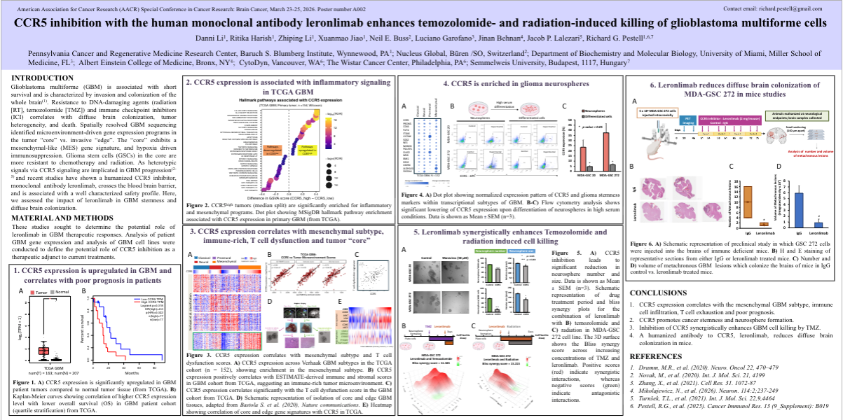 胶质母细胞瘤(GBM)因其高度侵袭性和对标准疗法的抗性而难以攻克 。研究发现,CCR5 受体在 GBM 中显著上调,且与患者的生存预后呈负相关 。