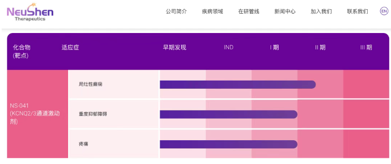 纽欧申医药自主研发的 NS-041 是一款高选择性的KCNQ2/3(Kv7.2/7.3)激活剂,目标用于治疗癫痫和抑郁症等神经精神类疾病。2025年7月,纽欧申就此项目与丽珠医药达成一项大中华区独占许可协议,齐力加速此候选药物的上市进程。纽欧申报道,NS-041在临床前研究中展示出良好及差异化的药效和安全性数据,拥有成为同类最佳的潜力。