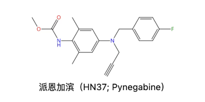 海南海药与中国科学院上海药物研究所合作开发的抗癫痫1类创新药 Pynegabine (派恩加滨, HN37)。该项目列入2018年国家重大新药创制科技重大专项(民口)项目,及2020年海口市重大科技创新项目。目前已完成Ⅰ期临床研究,启动癫痫治疗的Ⅱ期临床研究(CTR20241138)。