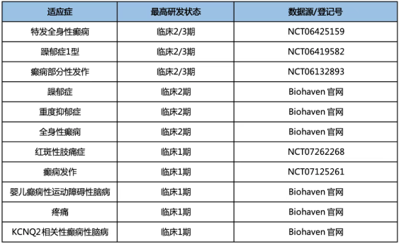 Biohaven 的 Opakalim (BHV-7000) 正在进行多项临床2/3期研究。